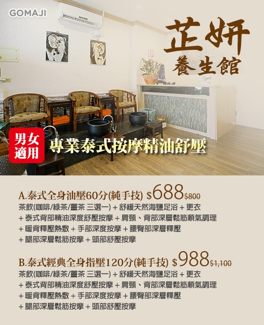 【芷妍養生館】專業的泰式按摩技巧一吋吋釋放所有疲勞和痠痛,使緊繃肌肉完全放鬆,宛如身在雲端般幸福,為身體注入滿滿活力與元氣!